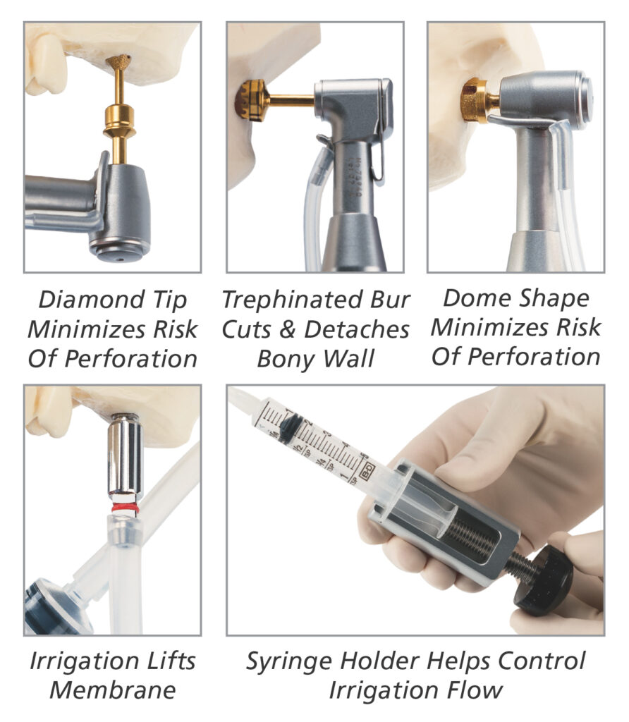 • Trephinated Bur Cuts & Detaches Bony Wall